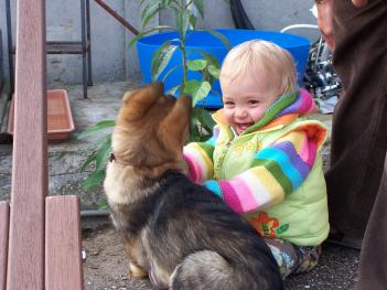 We zijn vandaag naar de Biezenhoeve geweest om een Duitse Herder te gaan kiezen. Ik mocht gewoon tussen de puppies van 4 weken oud op de kiezel gaan zitten van mama en papa ! Ik vond het gelek en geknabbel van die gezellige beestjes wel héél leuk, en binnen 3 weken mag ik er eentje gaan halen... De naam hebben mama en papa al gekozen: Hero. Ik kan al niet wachten tot ik met Hero op het gras mag ravotten