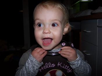 Onze kleine meid begint al een echte peuter-puber te worden. Met alle streken vandoen. Mama en papa weten soms echt niet meer wat ze moeten doen. Alle kasten en lades opentrekken. Als ze geen aandacht krijgt, stoute dingen gaan doen. En dan moeten mama en papa wel kijken en kijven. Maar ze kan nu ook lieve kushandjes geven en kusjes op de wang.